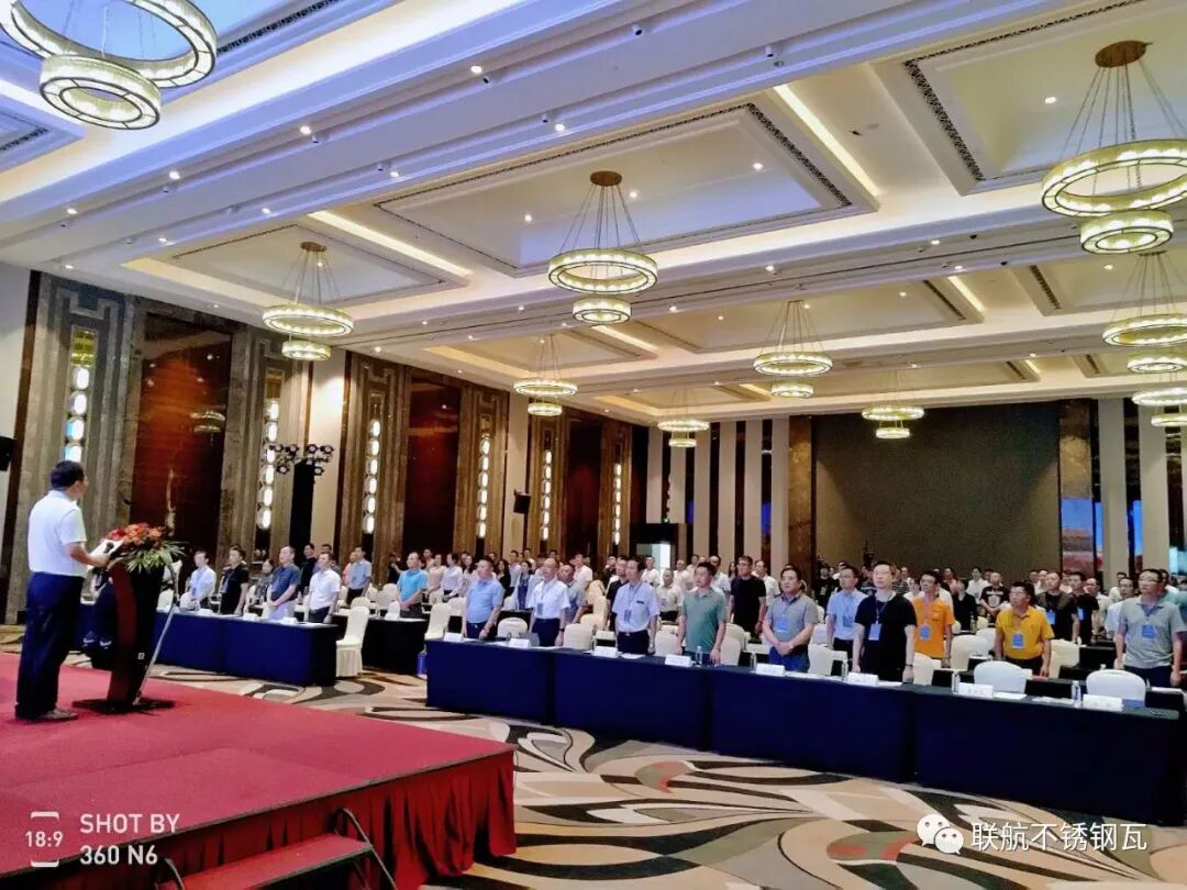 7月3日上午08:30,海宁开元名都大酒店3楼名都厅,2020长三角不锈钢创新高峰论坛在雄壮的国歌声中隆重开幕。青拓集团有限公司领导周杰、海南省不锈钢行业协会秘书长王羲、兴化市不锈钢协会秘书长沈培林等近200位不锈钢产业链各方面领导出席了创新高峰论坛。