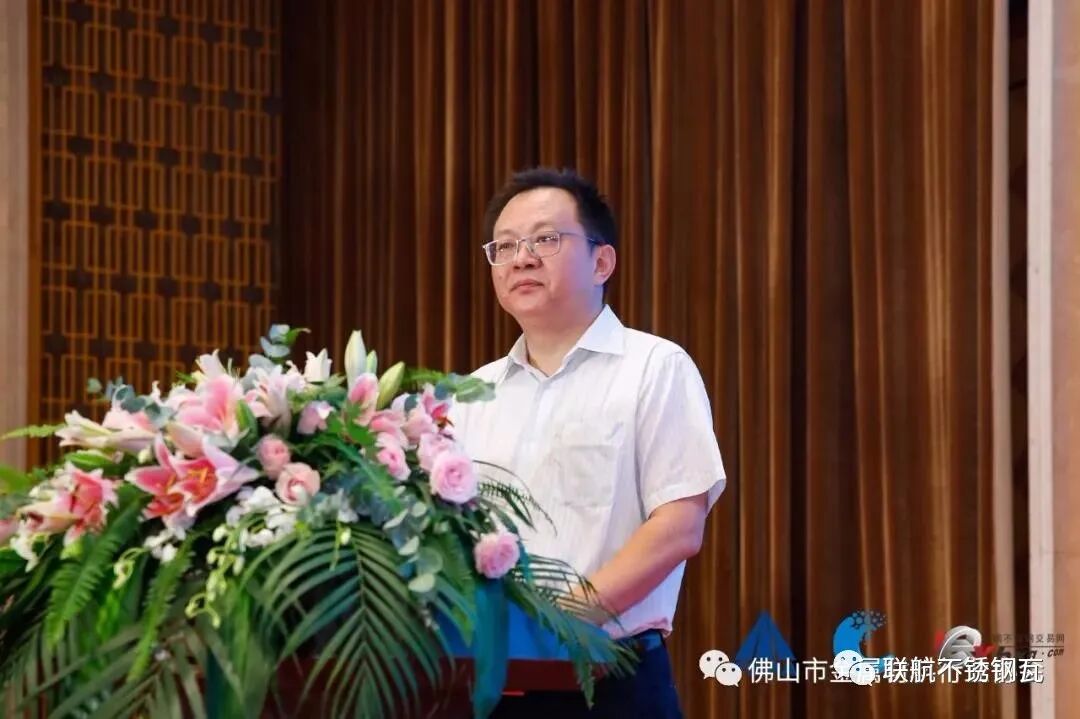 承办单位--无锡市不锈钢电子交易中心有限公司的领导、浦新金属集团总经理沈稚辉致欢迎辞。